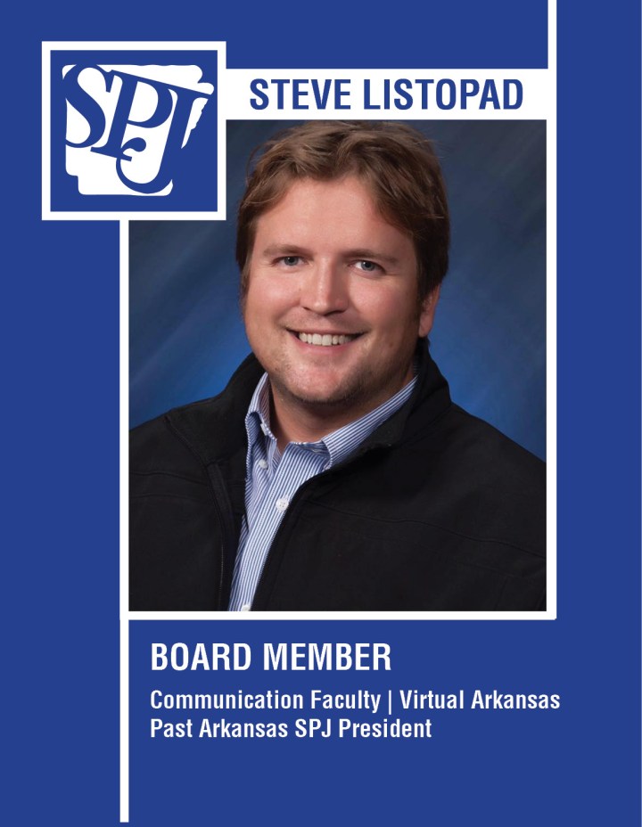 The Arkansas SPJ Board of Directors has 11 seats that are up for election each year, including executive officers: president, vice president, treasurer and secretary.